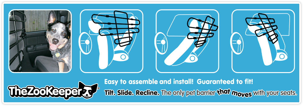 The ZooKeeper was a great solution. Perfect size and it allows you to move seats around easily. The shape is perfect for our SUV and now Jake stays in the back where he belongs.”